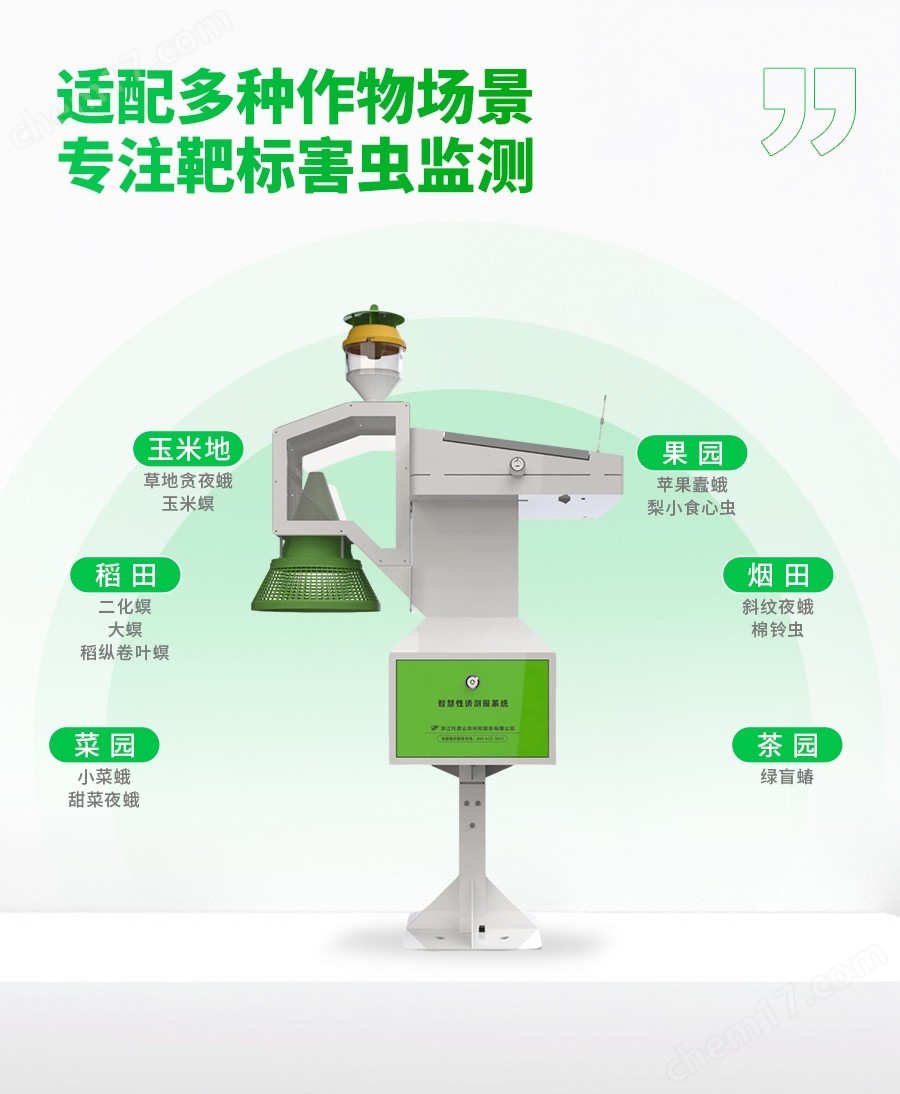 番茄潛葉蛾智慧性誘測報系統(tǒng)(露地)是一款集成了太陽能板、高清攝像頭、自動卷動粘蟲膠卷和遠程網(wǎng)絡通信技術的智能監(jiān)測設備,適用于露地番茄、馬鈴薯等茄科作物種植環(huán)境。番茄潛葉蛾智慧性誘測報系統(tǒng)(露地)利用昆蟲性信息素(性誘芯)吸引目標害蟲番茄潛葉蛾,采用自動卷動粘蟲膠卷誘捕害蟲,內置1600萬高清攝像頭,實時采集蟲情照片上傳至物聯(lián)網(wǎng)云平臺,經(jīng)智能算法分析準確識別番茄潛葉蛾并自動計數(shù),生成蟲情數(shù)據(jù)趨勢圖,便于及時掌握番茄潛葉蛾發(fā)生動態(tài)。設備具有結構簡單、安裝方便、操作性強、專一殺蟲、安全環(huán)保等優(yōu)點。